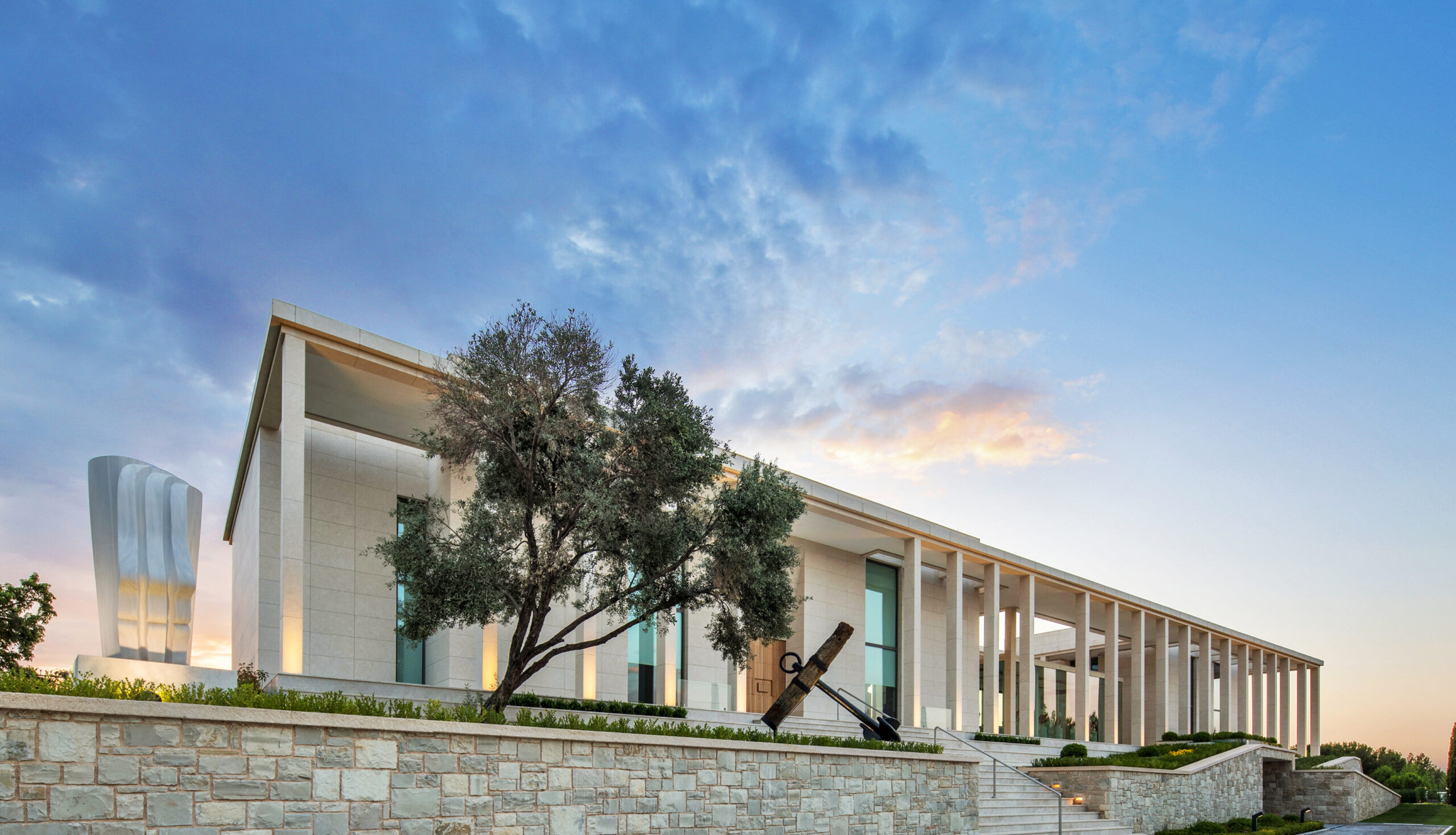 Artı3 Mimarlık tarafından tasarlanan bina, tamamında doğal taş kaplamalarının kullanıldığı yalın ve etkileyici mimarisiyle, Turgut Cansever Uluslararası Mimarlık Ödülleri’nde mansiyon sahibi olmuştur. İç mimari tasarımı ise The Big House tarafından gerçekleştirilen Arkas Sanat Urla’nın zemin katında, 19–20. yüzyıl Avrupa resim ve heykel sanatının önemli temsilcilerinin eserleri ziyaretçileri karşılamaktadır. Üst katta ise 16-17. yüzyıl Avrupa hanedanlarına ait, işlevselliklerinin yanı sıra birer sanat eseri niteliğine sahip zırh, miğfer ve silah koleksiyonu, Rönesans duvar halıları ve klasik dönem Anadolu halıları sergilenmektedir. Sergi turu, Antik Dönem tapınaklarından mermer replikalar ve Roma imparatorlarının mermer büstlerine ait bir seçki sunan cam galeride sona ermektedir.
